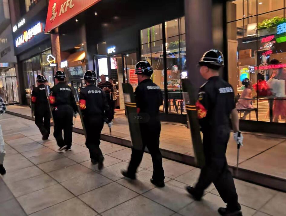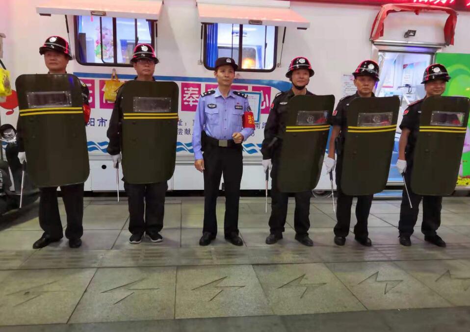 為了順利推進(jìn)國慶70周年安保工作,樊城區(qū)公安分局內(nèi)保大隊陳鵬隊長結(jié)合“不忘初心、牢記使命”主題教育活動,扎實開展保大慶保軍運的工作,于2019年9月21日組織樊城區(qū)漢江派出所民警和戎安保安服務(wù)有限公司保安隊員,在樊城區(qū)人員密集場所開展義務(wù)巡邏。